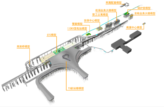 | 曹家堡机场三维整体布局图 | 曹家堡机场航站楼分层图 |